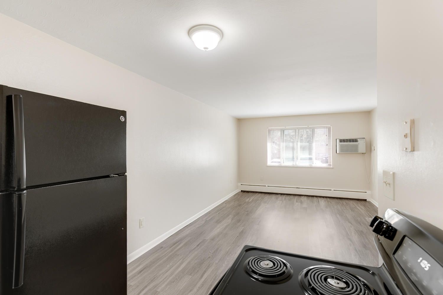 The studio apartment is ideal for singles in Littleton, CO who need minimal space and want to maximize every inch of their living space. It is 450 square feet, and the open design allows occupants to make use of every inch of that space. Your studio apartment will have individually controlled heating, a wall unit air conditioner and all of the kitchen appliances you need. The studio apartments have been newly remodeled, and they feature double paned sliding windows to allow ample natural light in while also protecting your energy bills. Upgrade light fixtures, new mini blinds and kitchen appliances ensure you are comfortable in your new home.
